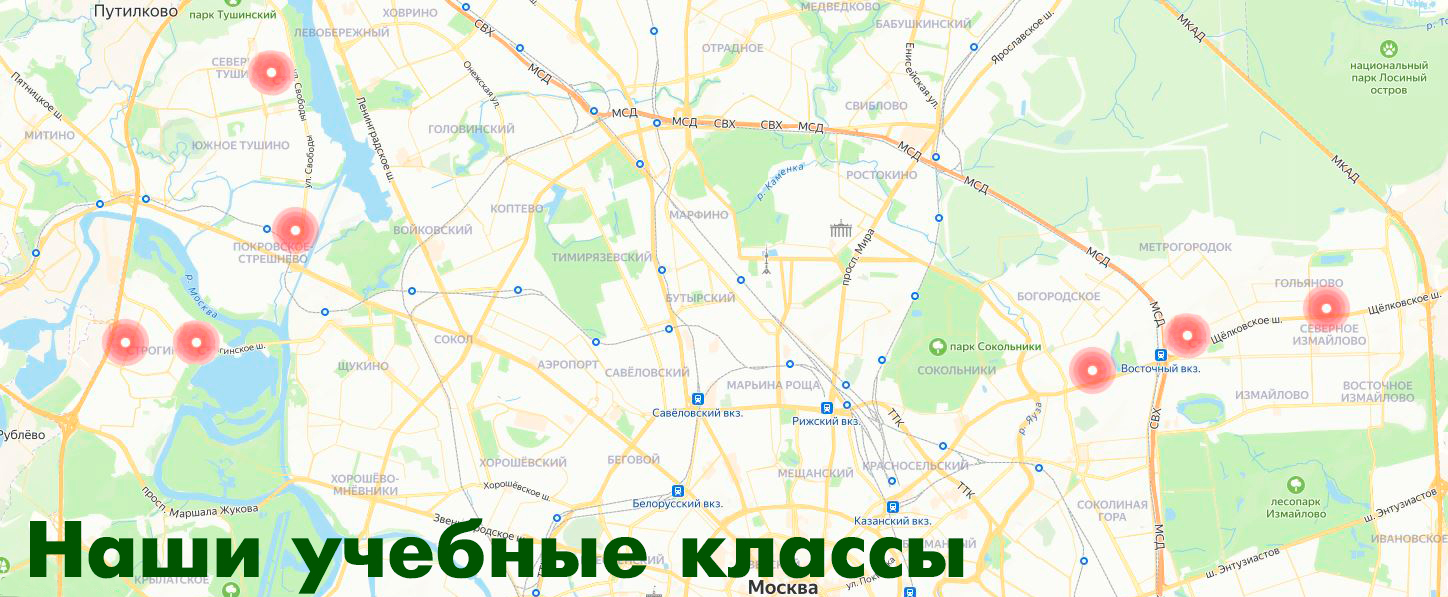Учебные классы нашей автошколы находятся в районе Преображенское (ВАО, метро Преображенская площадь, Бульвар Рокоссовского), в районе Гольяново (ВАО, метро Щелковская), в районе Строгино (СЗАО, метро Строгино), в районе Покровское-Стрешнево (СЗАО, метро Тушинская), в районе Северное-Тушино (СЗАО, метро Сходненская)